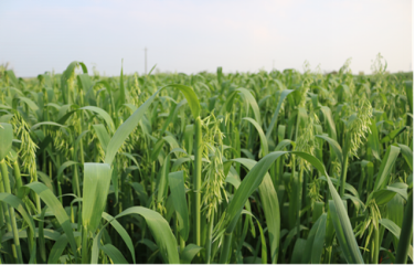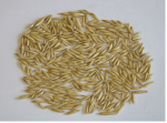 特征特性:‘黑玫克’燕麦属一年生草本植物。须根系发达,茎秆粗壮直立,株高自然高度140-160cm,丛生,分蘖多。叶片宽而平展,长40-50cm,宽2.5-3.5 cm,叶量大。穗型侧散型,圆锥花序开散,穗轴直立或下垂,由4~6节组成,每小穗有小花2~3朵。颖果纺锤形,外稃具短芒或无芒,千粒重46g。‘黑玫克’叶量丰富,适口性好,产量高。抗倒伏能力强,抗寒耐旱,具晚熟特性。