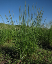 植物学特征:多年生草本。全株浅灰绿色,秆直立、疏丛。株高121~136cm,叶片较坚硬,灰绿色或被粉质。穗状花序长14~18cm,劲直;每穗轴节着生1枚小穗,小穗灰绿色,含5~8小花。颖先端渐尖,脉上粗糙;外稃背部平滑或仅上部微粗糙,芒长且粗糙,微反曲。内稃与外稃等长。粗蛋白含量7.8%。自花授粉,2n=28。颖果稍扁,千粒重为4.0 g左右。