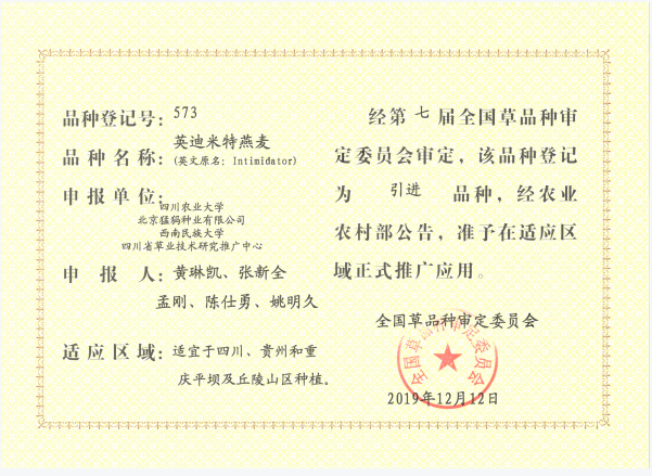 一、成果名称:英迪米特燕麦