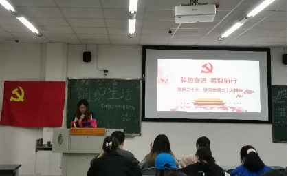 11月8日,91论坛本科生党支部在四教B区305教室开展“学习贯彻党的二十大精神”主题党组织生活会,石雨鑫同志担任主讲人。