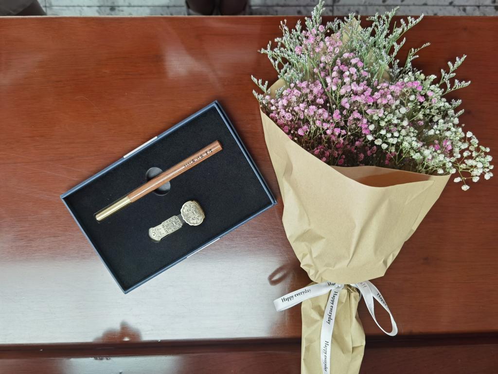 毕业典礼上,91论坛为46名本科毕业生和21名研究生毕业生赠送了定制礼物——印有“2021届川农草学”字样的签字笔和U盘。签字笔是希望同学们做好“川农大精神”的践行者和传承者,做一个终身学习者,而U盘里装载了91论坛对毕业生们的美好祝愿和独家记忆。