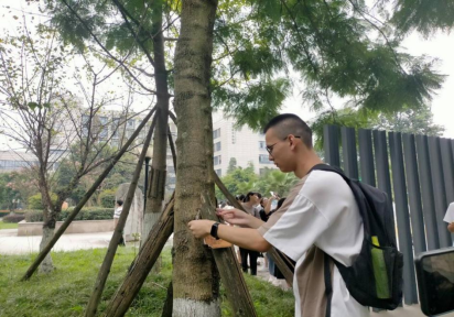 为了帮助同学们更快地熟悉校园、了解专业,91论坛以专业基础课程《植物分类学》为基础,开展“‘植’说校园”新生游园活动,激发新同学们专业学习的好奇心。前期在91论坛的资助下,院学生会基于草学2018级1班王一博同学自创的植物科普微信公众号“春和社”,对校园内80余种植物进行分类并制作植物名牌,标注其名称、品种、特性级用途等基础知识并附上二维码。新生在助班、驻党的带领下沿着四条不同规划路线游览校园,一边熟悉了解校园,一边为校内常见植物挂上名牌。“看,这是银杏!”“原来四教门口还有木芙蓉,这是成都市花!”新生们积极讨论看到的植物,争相上前挂牌。当遇到未知植物时,大家主动查阅资料,比对植物的花、叶、果实等特征,师兄师姐也结合专业知识进行讲解。新生们对大学第一堂“专业课”兴味盎然,争相为校园公益科普留下属于自己的印迹。“这次游园活动很有趣,在了解校园环境的同时,还能学习到专业的知识,让我对未来专业课的学习更加期待!”草学2021级4班袁苏红说道。