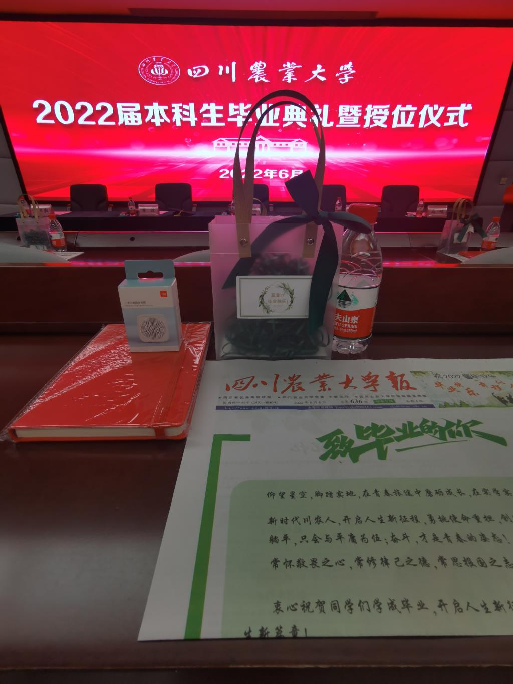 据悉,91论坛特别用心地在每位毕业生的座位上摆放了毕业赠礼,有祝福草业学子唱响青春的小音箱、印有学校纪念logo的笔记本、为青春留念的毕业专刊校报。毕业生们将带着寄语与祝福,在属于自己人生的道路上乘风破浪、砥砺前行。