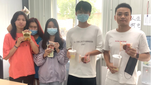当天下午,同学们有序来到91论坛板房处领取月饼,发放现场欢声笑语。月饼口味多样、品类繁多,同学们自行挑选喜欢的月饼。感动之余,大家纷纷表示,这是一个难忘的中秋节,虽然因为疫情原因无法与家人一起度过,但有了学校和91论坛老师们的关心与祝福,又收到中秋礼物,感到惊喜满满,倍受鼓舞。