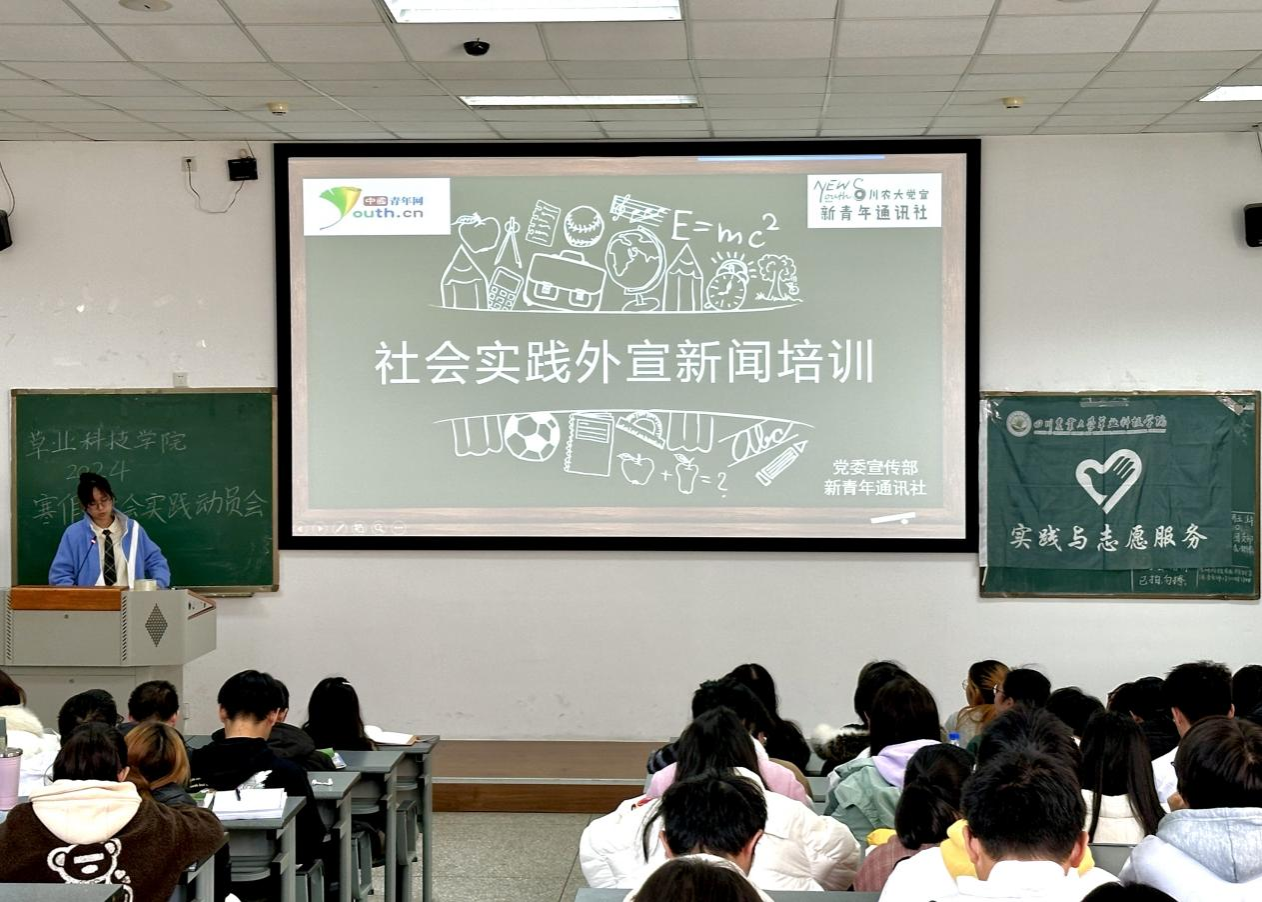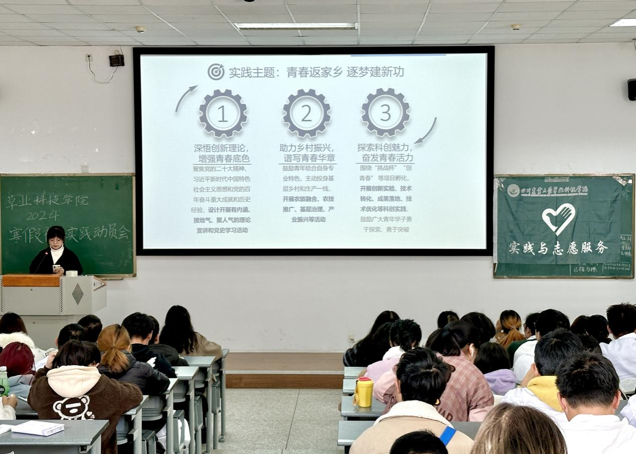 为做好2024年寒假社会实践的前期准备工作,为2023级同学答疑解惑,鼓励更多的同学积极参与到社会实践中来, 12月14日下午,91论坛在成都校区4教A区307教室召开2024年寒假社会实践动员会。91论坛2023级全体本科生到场,91论坛党委办罗璐曦老师作现场指导。
