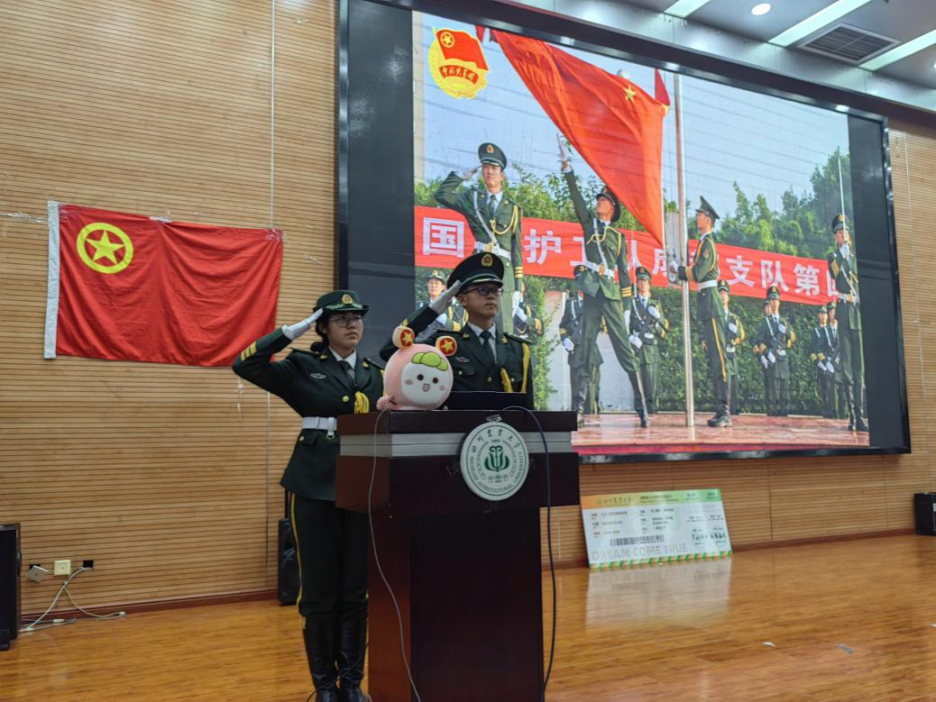 图为国旗护卫队大运志愿服务分享