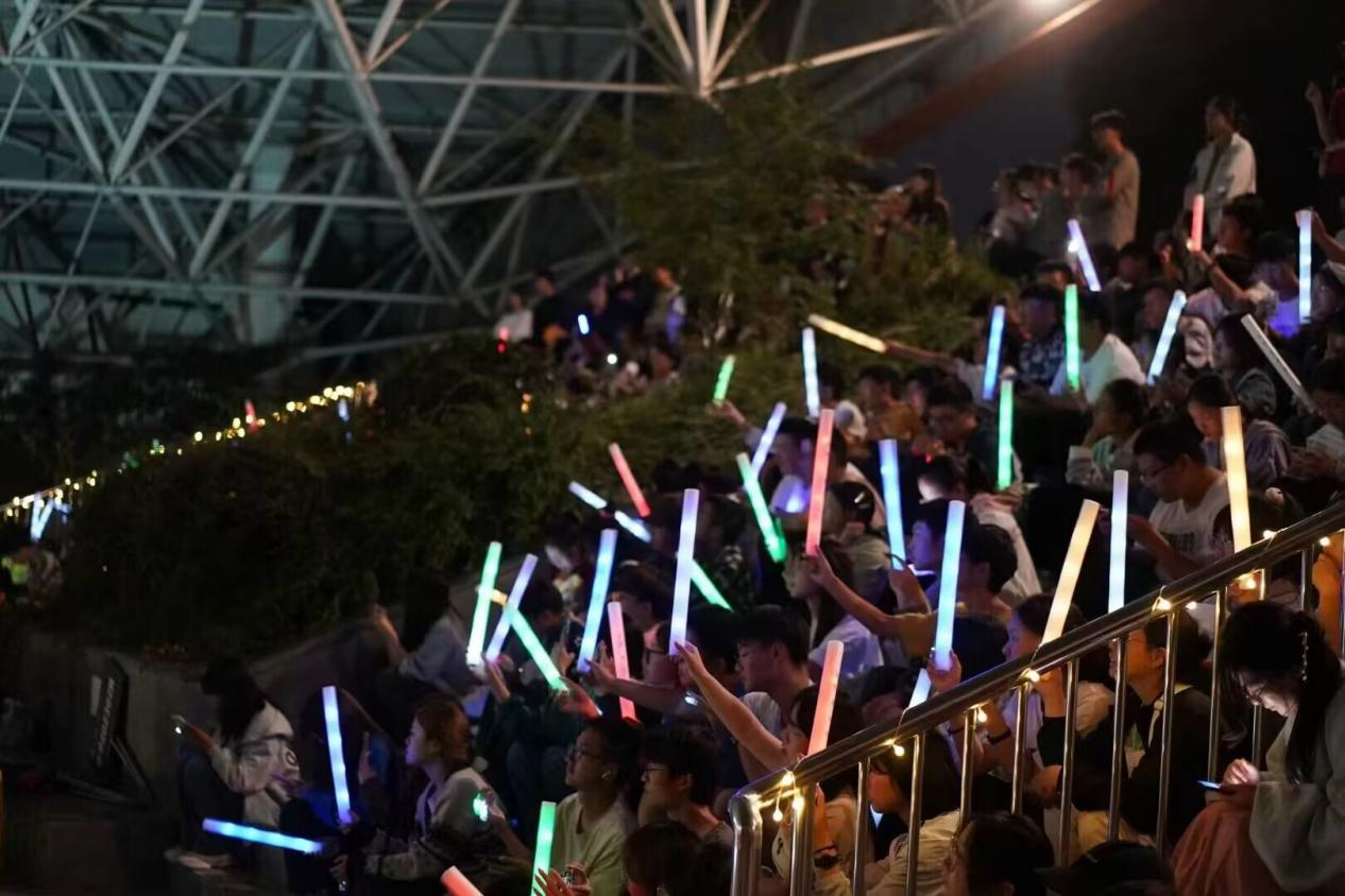 晚上七点,晚会在舞蹈《Queencard》中正式拉开帷幕。91论坛舞蹈团的女孩们以活力四射的舞蹈将现场气氛点燃,观众们手中的荧光棒随着节拍一起挥动。随后,2023级新生范恒睿、陈欣怡演唱的《只对你有感觉》再一次引起同学们的阵阵高呼。他们优美的嗓音和轻快的旋律,让下沉广场充满了欢乐的氛围。草学2202苟扬同学的一首《稻香》带领大家一同回忆起了生活中那些美好的瞬间。