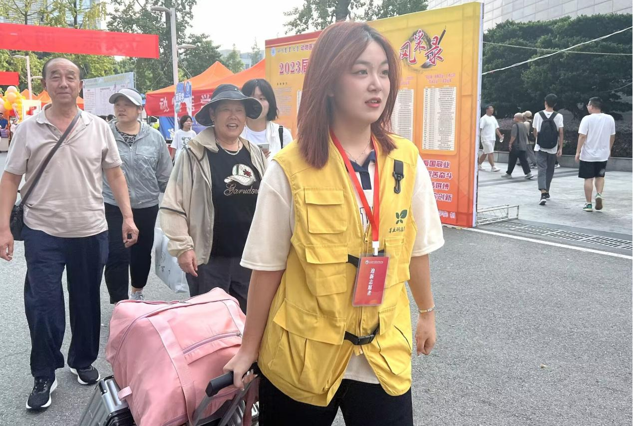 “我5号就来报到了,师兄师姐们带上我,我也要帮我的同学们搬运行李。”2023级新生蔡永锡刚完成报到,便穿上志愿马甲,与师兄师姐一同投入迎新工作。
