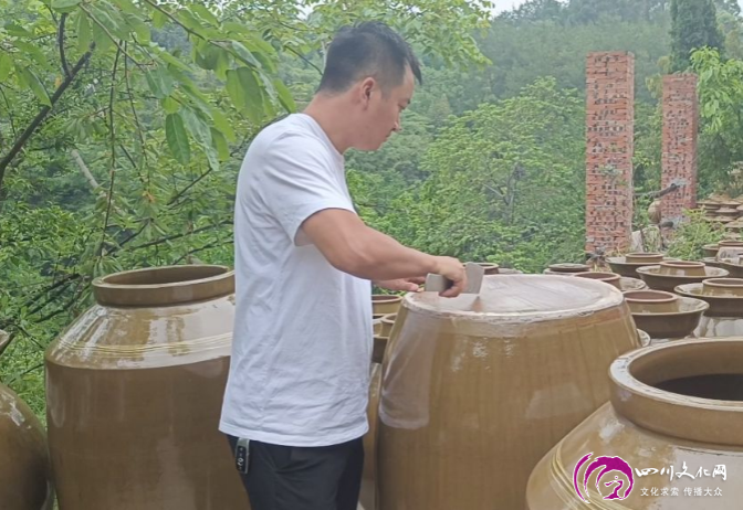 图为余晓飞在检测陶罐质量。 通讯员 余航 供图