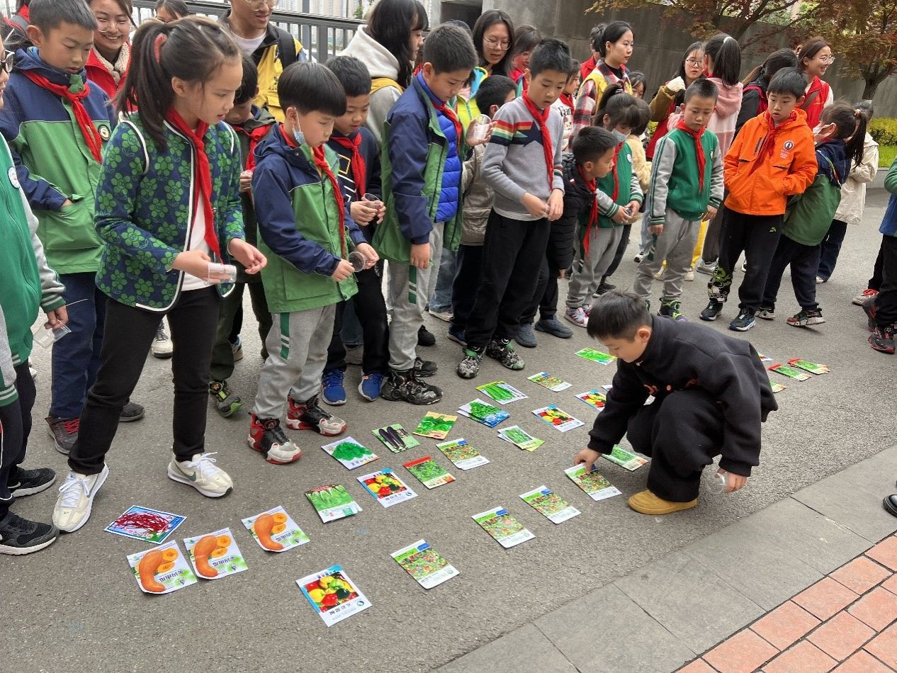 紧接着,志愿者们带领小朋友为班级挑选心仪的蔬菜种子,有五彩辣椒、玻璃白菜、香菜、上海青、南瓜、茄子……“我吃过茄子!可是第一次见到茄子种子。”一位来自二年级的小朋友对志愿者说到。“那你仔细观察一下茄子种子的形状吧。”在志愿者的引导下,小朋友们仔细观察了手中蔬菜种子的特点,回答道:“茄子的种子是黄色的,扁扁的,滑滑的。”在观察过手中的种子后,91论坛实践与志愿特聘导师陈德炜同学指导大家进行育苗。志愿者帮助小朋友挖土,小朋友将种子种进各自的纸杯里,并将完成育苗的纸杯带回班级,邀请全班同学一起仔细观察和记录发芽状况。