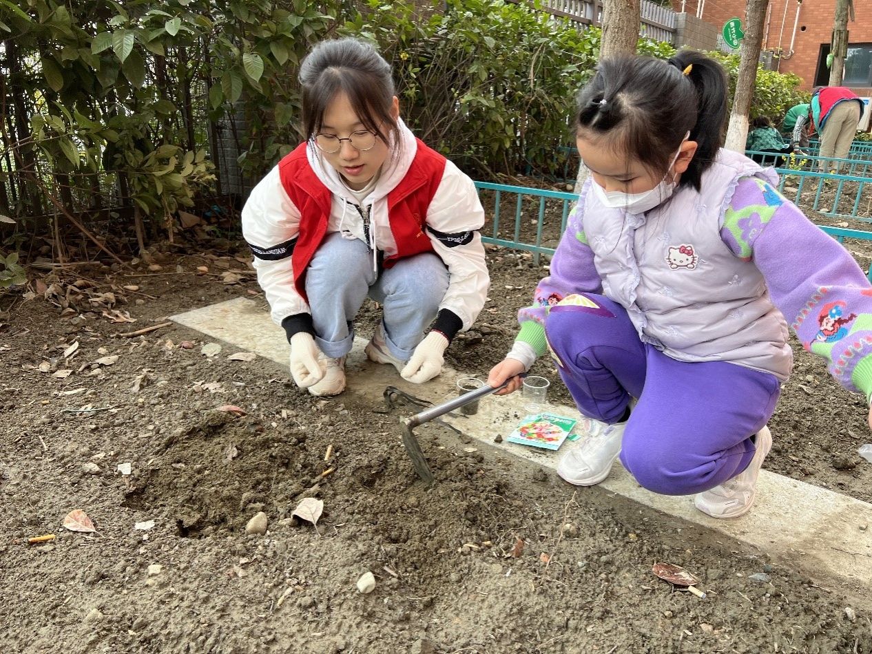“短短几个小时的志愿活动却收获巨大,不仅和小朋友们一起学习成长,而且也有了种地初体验,从一颗种子播种到发芽出苗要经过这么多步骤。这次完成的虽只有几平米的地块,但拿锄头的手已经酸了不知道多少次了。从小便知‘谁知盘中餐,粒粒皆辛苦’,但真到自己来实践才知辛苦之所在。为了建植出一片优质草坪,我们从翻耕板结的土壤,到一遍又一遍施营养土、施基肥,再到完成土地平整之后撒种,可见为了种好一棵草是多么的难。本次活动以植树节为主题开展,也让我深知了环境保护的意义,在接下来的活动中我也会积极参与,让自己成长,也奉献出自己的青春力量。”志愿者袁苏红说到。