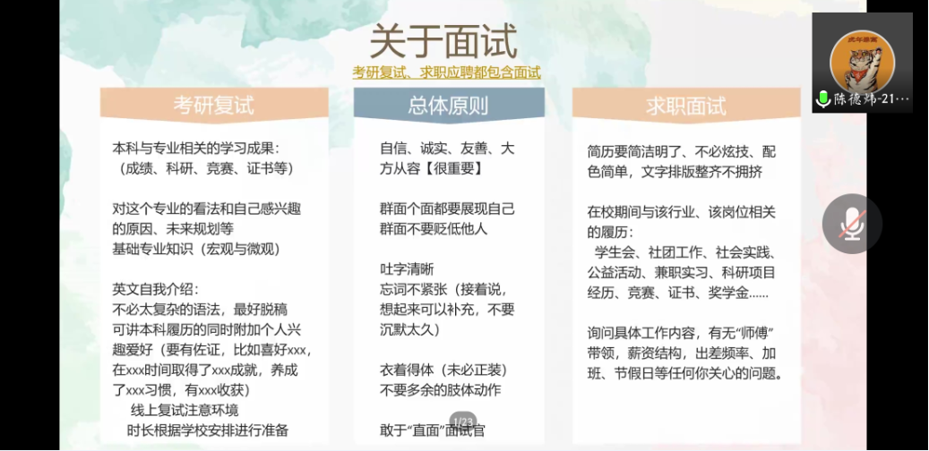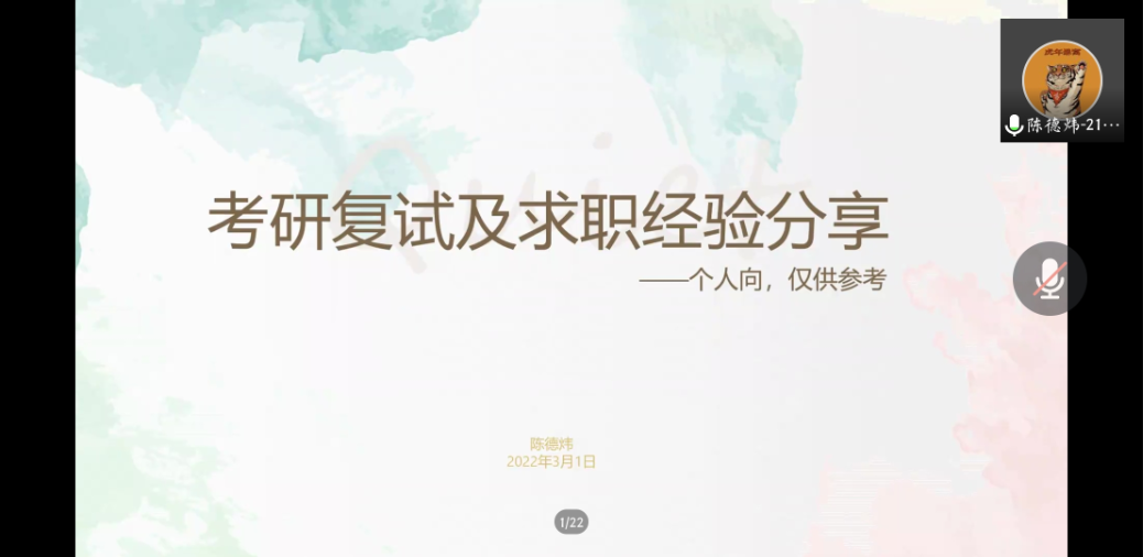 此次考研复试经验分享会旨在加强师生之间的交流,多层次、多维度分析当前的就业形势,以期为考研准备复试、调剂的同学提供更多的意见与建议,帮助更多的毕业生考研成功上岸。