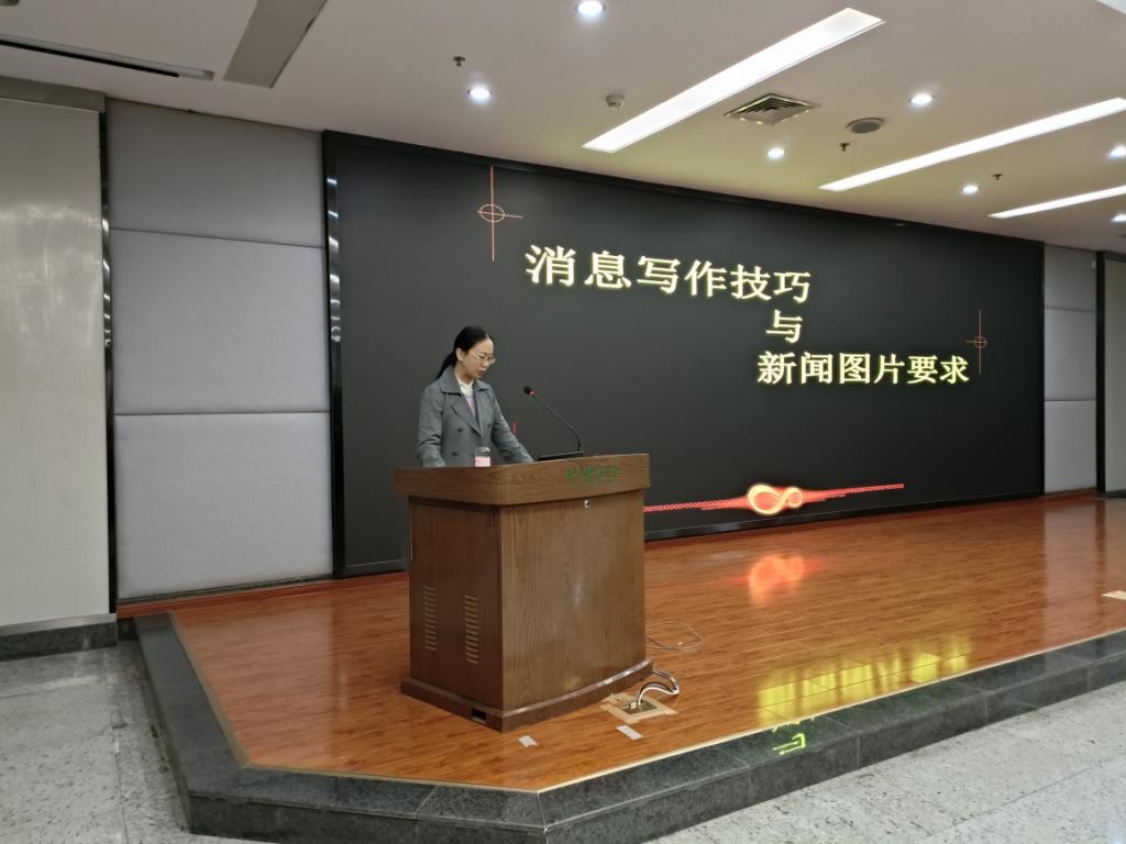 本次会议特别邀请到学校党委宣传部杨雯老师为同学们作“消息写作技巧与新闻图片要求”专题培训。从新闻的概念和要素、消息的结构到写作中常见的问题,杨老师都举以实例详细讲解,以便让大家有更加深刻的印象;杨老师还从新闻图片的分类与用途出发,为同学们讲解了不同情况下的拍摄技巧。