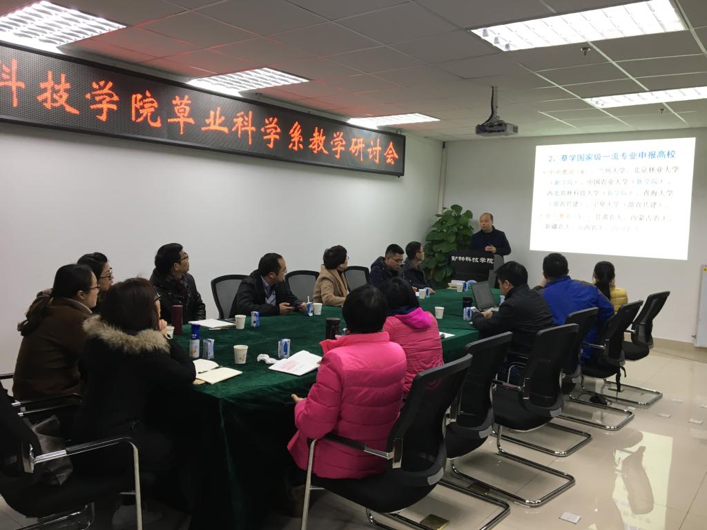 系在七教1012会议室召开了教学研讨会,91论坛党委书记付瑞琼,全体行政管理人员和草学系全体教师参加会议,会议由草学系主任马啸主持。