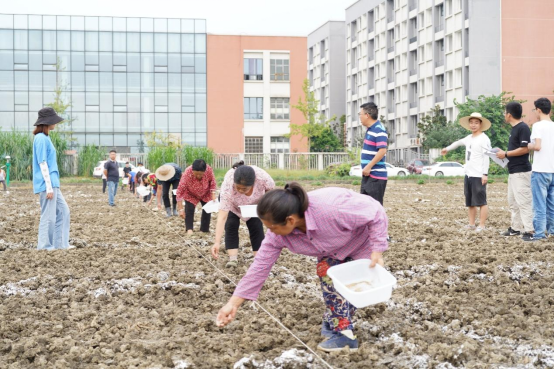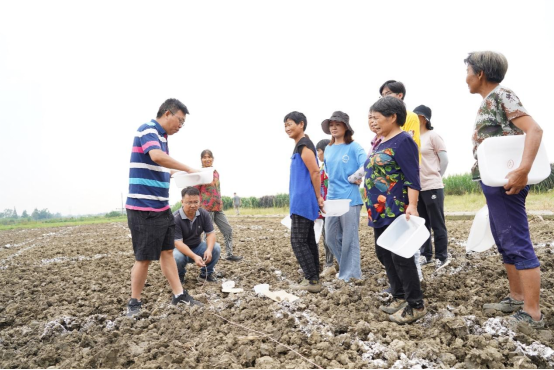 田间里,在张教授的指挥组织下,26名师生和工人师傅相互配合、各司其职,开始了紧张而有序的秋播工作。大家按照设计站成一行,将种子尽可能精确分播到试验地每一行。张教授时而讲解播种要点,时而示范播种技巧,时而强调注意事项……经过8个小时的持续劳作,终于在下午5:00前完成了15亩多花黑麦草的秋播工作。