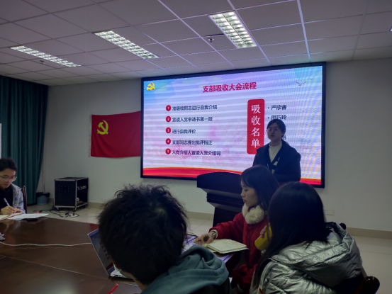 按照《中国共产党章程》相关要求,经政治审查、发展培训、支部调查、公示期无异议、自我评价及他人评价等程序,支部正式党员无记名投票,全票通过吸收严欣睿等五位同志成为中共预备党员,田雨龙等三位同志转为正式党员。