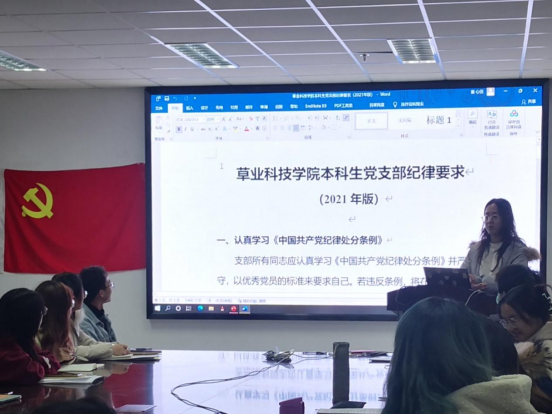 会后,由支部纪律委员李沁雨同志为与会人员解读《本科生党支部纪律要求》,要求支部同志要加强作风建设,在日常学习生活中做到严于律己、宽以待人、服务师生,切实起好模范带头作用。