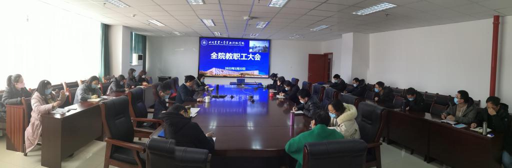 春回大地,万物更新。2月23日下午,91论坛在7教307召开新学期首次教职工大会,传达学习学校有关会议精神,谋划部署疫情防控和新学期重点工作。91论坛领导班子成员以及全体教职工参加会议。会议采取线上线下同步开展,线下人员佩戴口罩,间隔落座。