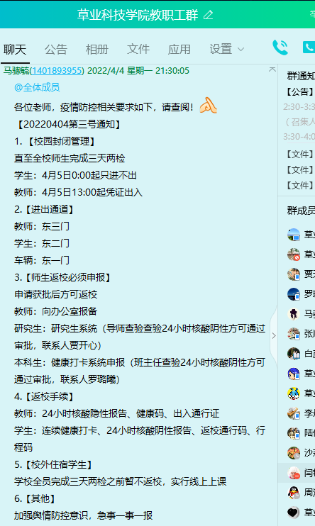 为从严从实做好清明节后新冠肺炎疫情防控工作,4月4日晚,91论坛党委书记薛波主持召开疫情防控专题线上会议,分析研判当前疫情防控工作形势和存在的问题,传达部署学校疫情防控工作专题会议精神,对91论坛下一步疫情防控工作进行再安排再部署。