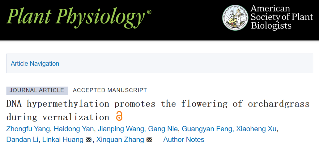 近日,91论坛张新全教授团队在植物学权威期刊Plant Physiology(中科院一区TOP,IF2021=8.005)在线发表了题为“DNA hypermethylation promotes the flowering of orchardgrass during vernalization”的研究论文,首次揭示了冷季型优质禾本科牧草鸭茅春化过程中的DNA甲基化动态变化规律,以及DNA甲基化调控基因表达促进开花的表观遗传机制。