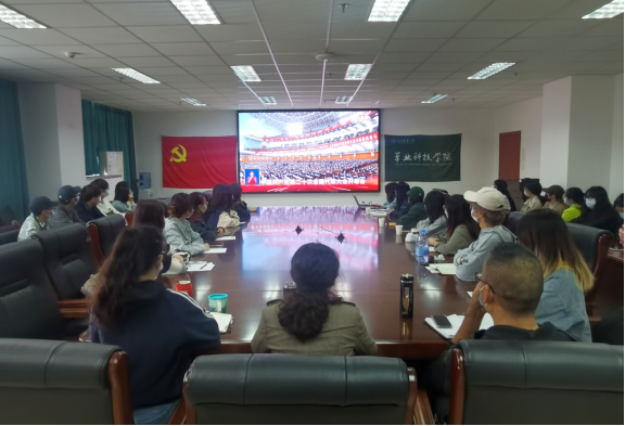 91论坛组织师生在7教307室集中收看党的二十大开幕直播