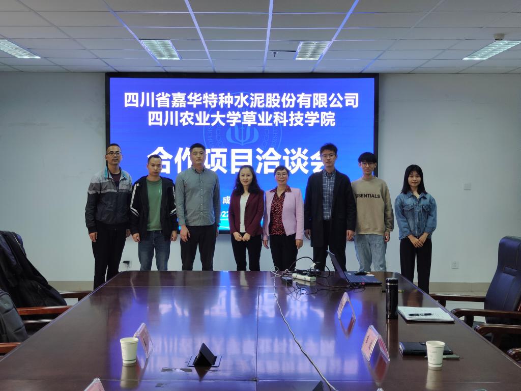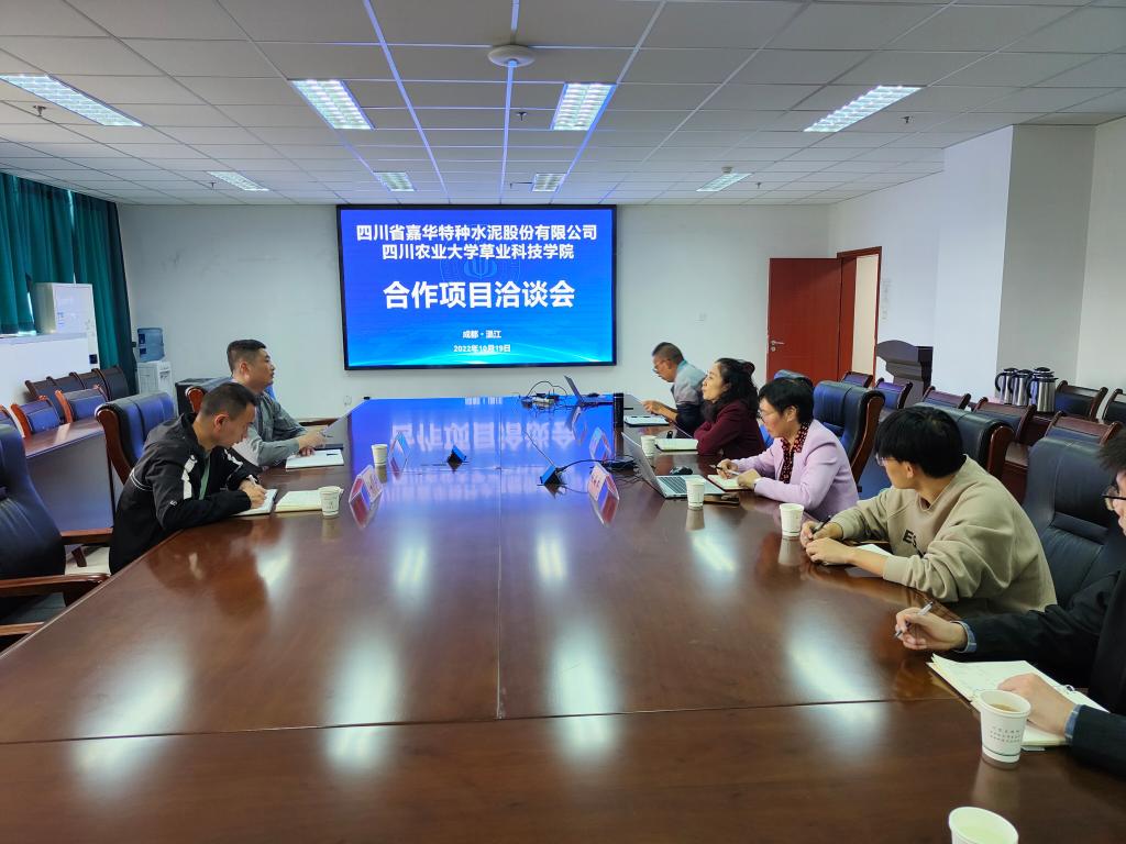 10月19日上午,四川嘉华特种水泥股份有限公司王宁高级工程师和阳黎工程师来院,就喷射植生混凝土技术进行合作交流。91论坛党委书记薛波、草育种与栽培系张海琴教授、院行政办公室主任贾开心等参加座谈会。会上,薛波对王宁高级工程师和阳黎工程师的到来表示热烈欢迎,并就91论坛基本情况作了介绍。张海琴介绍了团队基本情况及前期植生混凝土草种选择结果。
