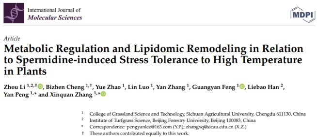 西南区草种质资源创制利用创新团队在亚精胺通过调节代谢稳态和脂质重塑提高植物耐热性的机制研究方面取得新进展。
