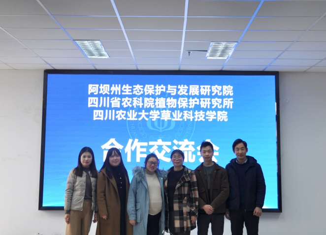 12月7日上午,四川阿坝州生态保护与发展研究院肖敏副院长、袁方柯、唐灏以及四川省农科院植物保护研究所魏真真副研究员、王毛助理研究员一行来院交流。91论坛党委书记薛波、草育种与栽培系张海琴教授等参加座谈会。