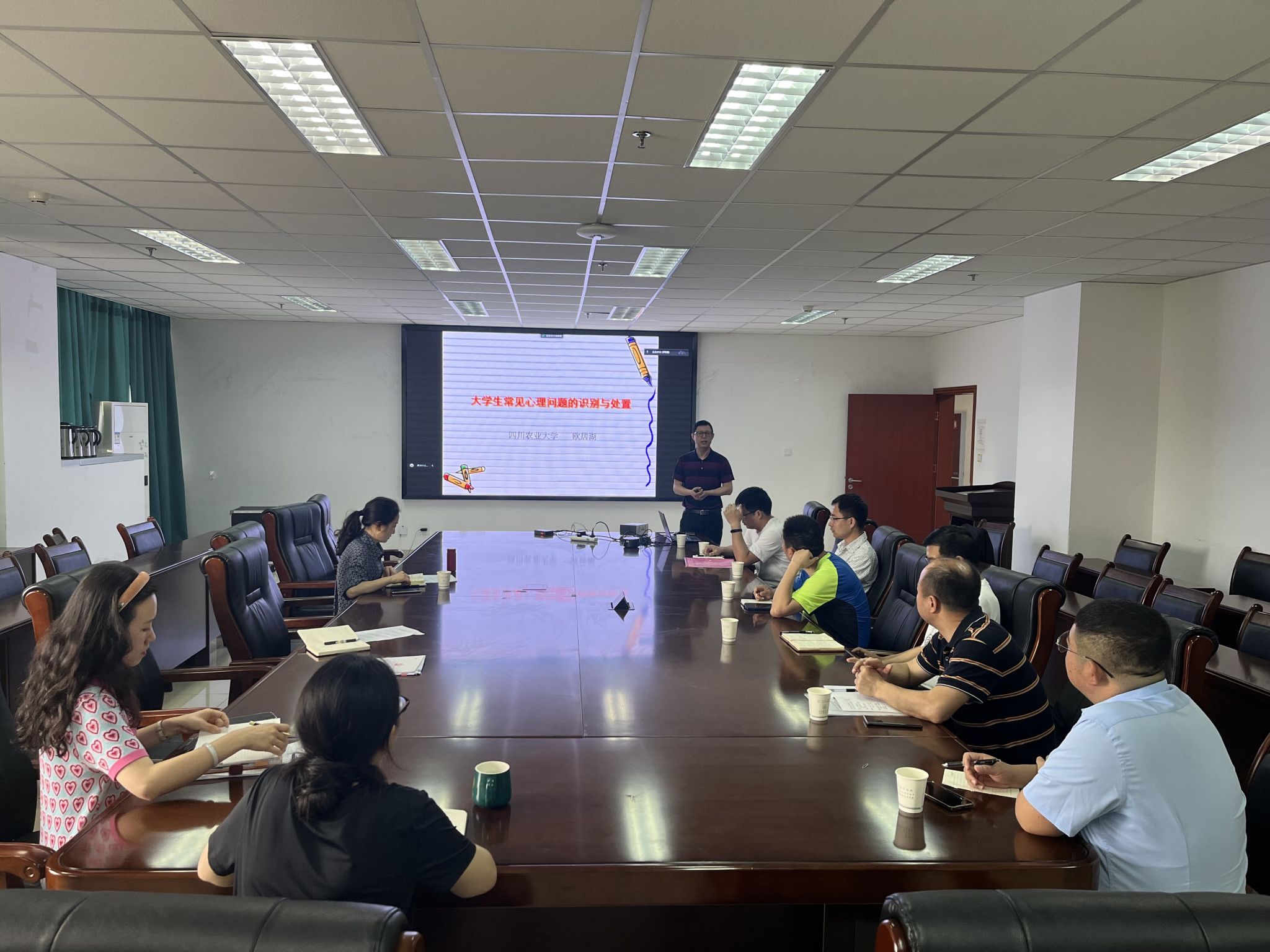 4月18日,91论坛在7教307会议室以线上和线下相结合方式召开心理辅导培训会。会议特别邀请学校心理健康教育办公室主任欧居湖老师开展“大学生常见心理问题的识别与处置”专题辅导。91论坛党委书记薛波、院党委办公室全体老师、全体本科小班班主任和部分研究生导师参加培训会。