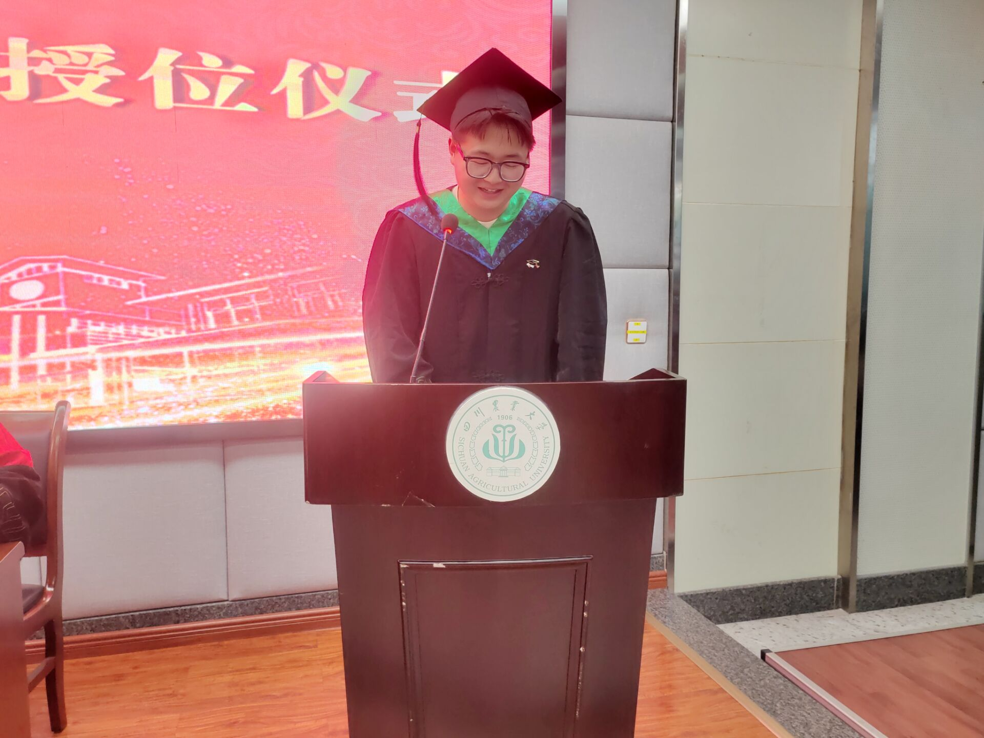 青年教师余国辉博士结合在校求学经历和初为人师的感受,饱含深情地为同学们送上了祝福和鼓励,号召毕业生们牢记川农人的使命,老老实实做人,勤勤恳恳做事,一步一个脚印,努力拼搏,常回家看看!