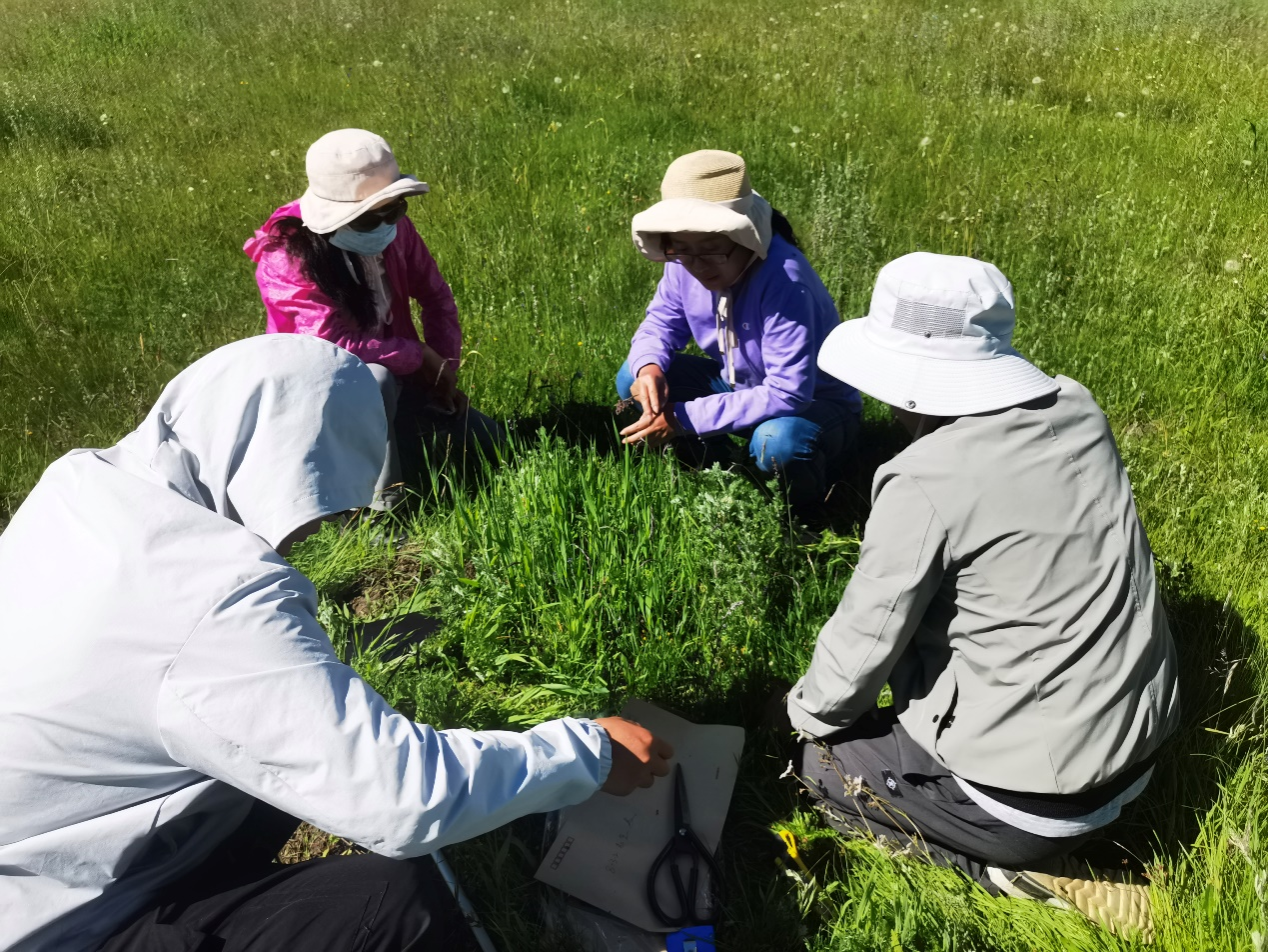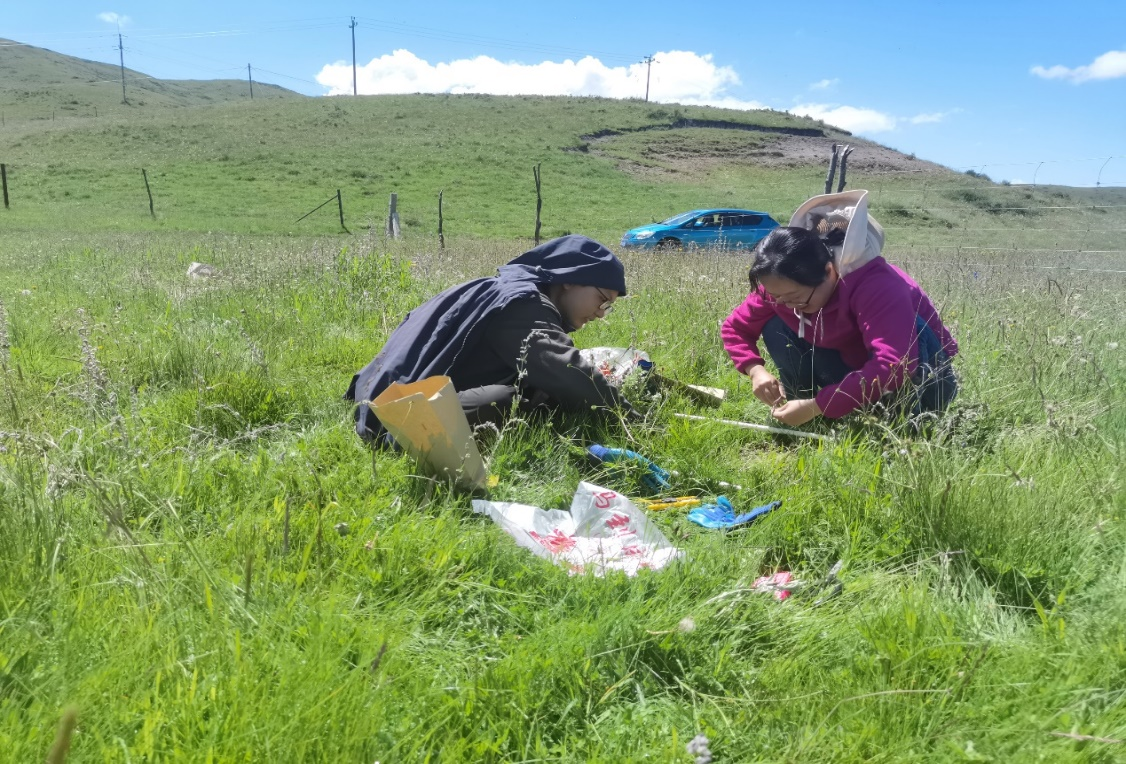 在唐日合作社,刘琳教授一行在前期对轻度和重度退化草地施行免耕补播的基础上,对改良草地进行实地测产和品质评估,全面评价免耕补播技术对退化草地生产力的提升效果;综合运用地理信息系统以及实地样方调查法,对当地的免耕补播草地进行精确测绘和精准监测。