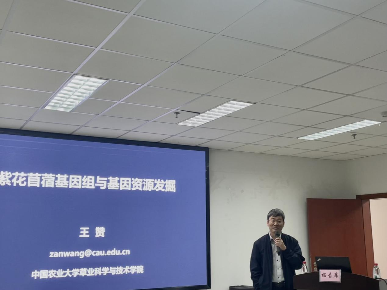报告会上,王教授为大家介绍了国内外紫花苜蓿基因组与分子育种的前沿研究进展,分享了团队基于紫花苜蓿全基因组及候选基因的抗旱性状关联分析、抗旱基因发掘技术的最新研究成果。