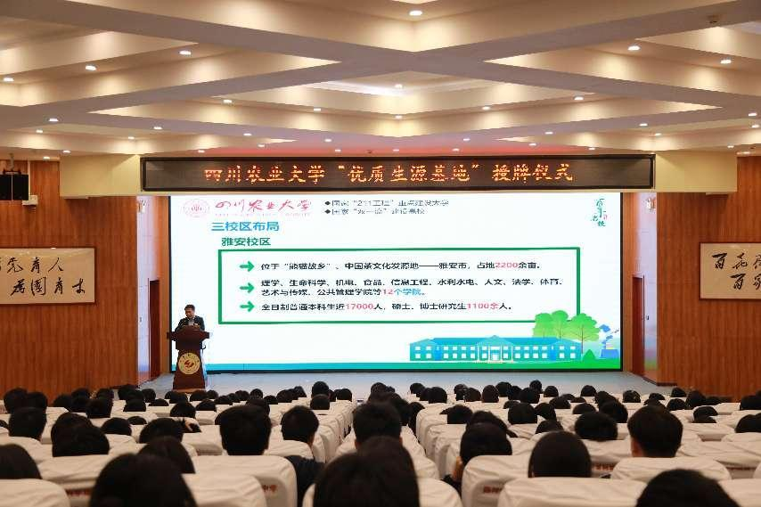 绵阳外国语学校是学校已建并挂牌的优质生源基地。在绵阳外国语学校招生宣讲会上,黄琳凯面向该校2025年第一批参加新高考的学子,对学校和91论坛进行了全面介绍,并与现场学生进行了交流互动。会前,双方就招生宣传活动组织、优质生源输送、校园研学等问题进行了深入交流。双方均表示要以本次活动为契机,持续深化交流与合作,助力更多优秀绵外语学子圆梦川农。