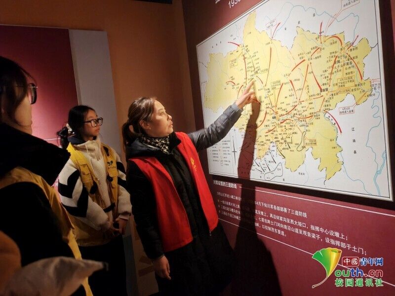 此时,红军长征纪念馆的工作人员为实践队员们讲解红军长征时的进攻路线,在此过程中,实践队员们切身感受到当年战争路线变化的过程,也在工作人员的介绍中知道了红军在转移时面临的巨大困难。