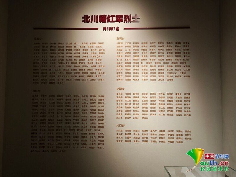 在参观北川红军长征纪念馆的过程中,实践队员们看到的一面姓名墙,上面记录的是牺牲的北川籍红军烈士。当看到这一面墙时,实践队员们全部肃然起敬,表示的各位烈士的尊重。