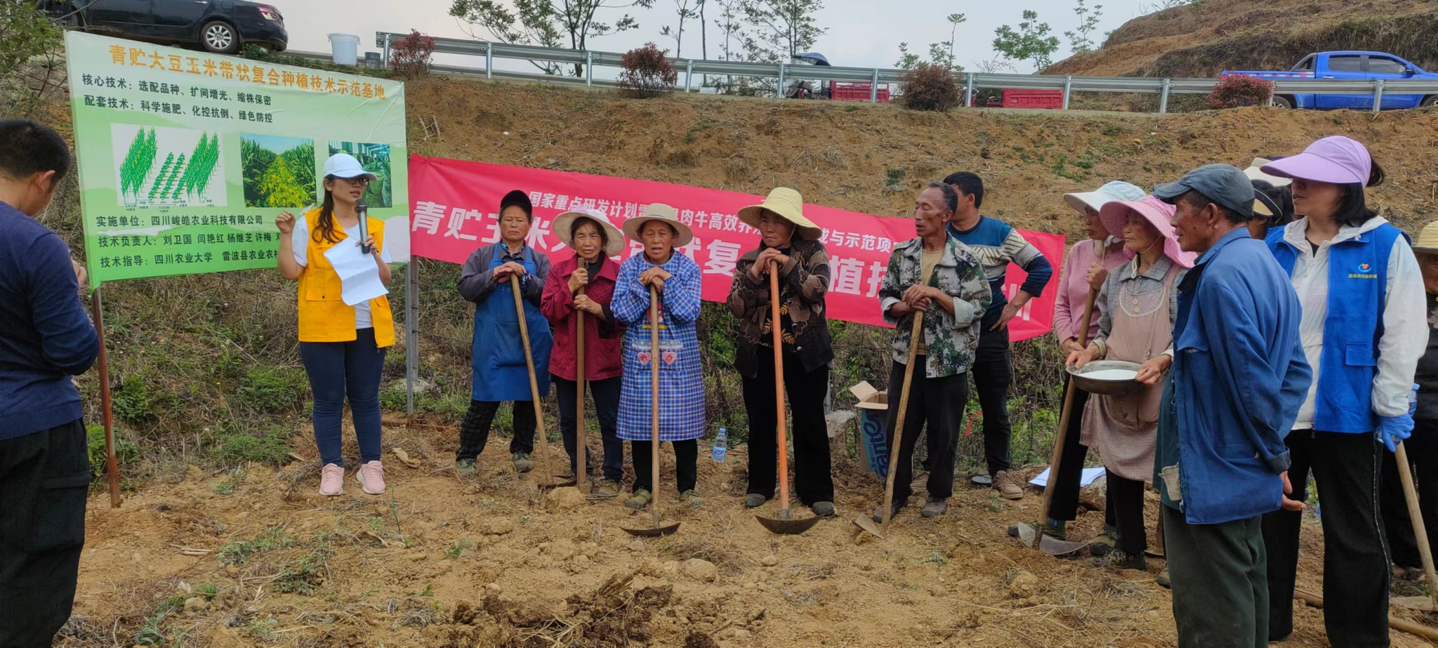 为更好推进我校定点帮扶工作,促进雷波县草牧业高质量发展,4月16-18日,省级科技特派员、91论坛闫艳红教授、农91论坛杨继芝副教授等一行6人赴雷波县开展青贮大豆玉米带状复合种植和利用技术指导工作。
