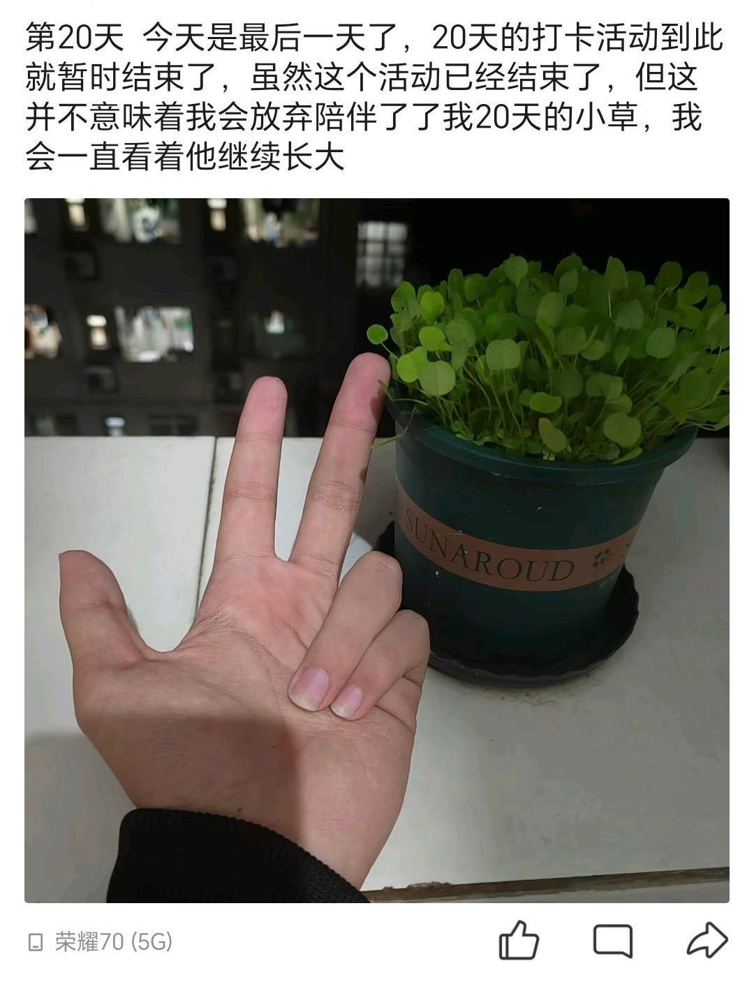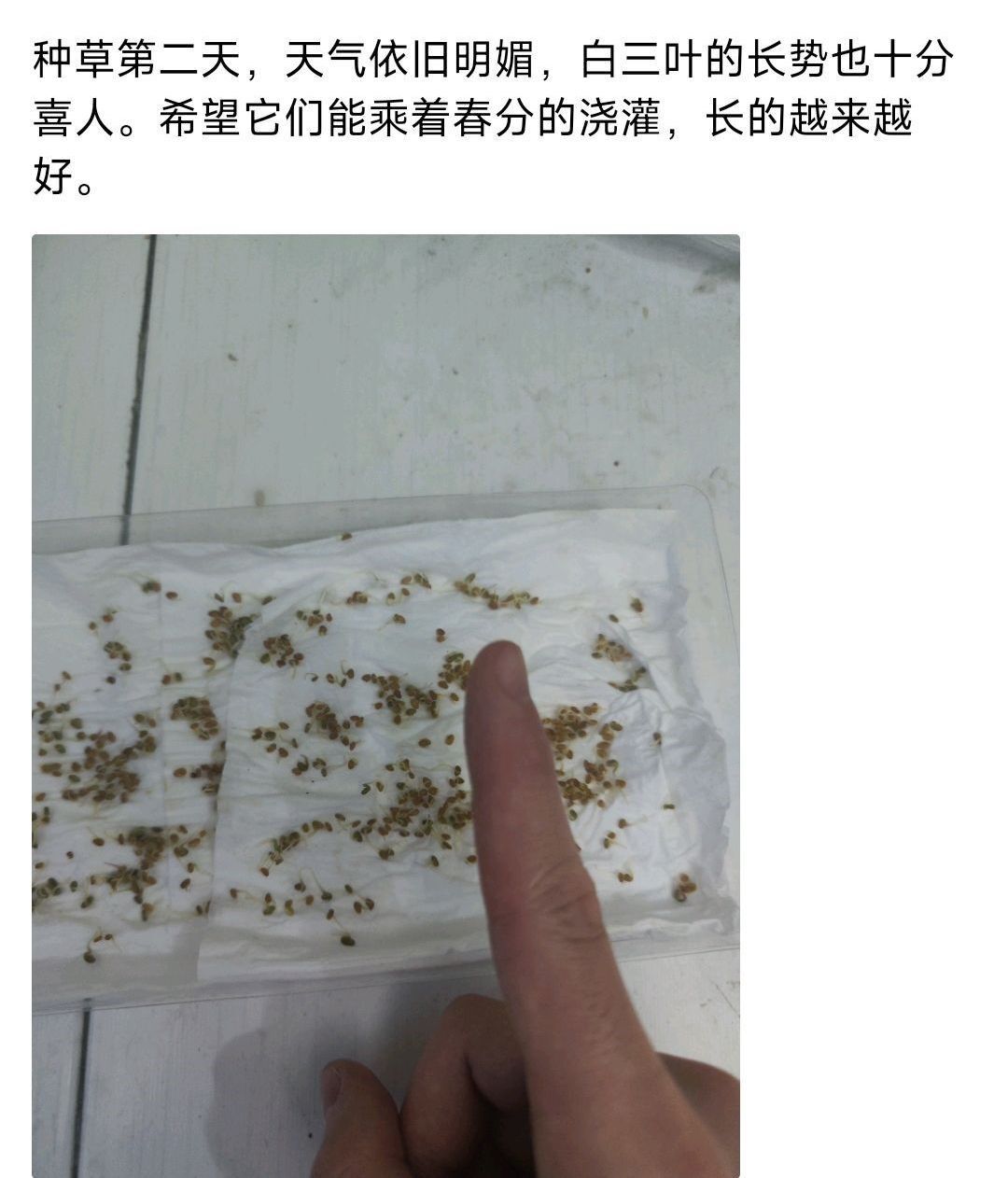 图为参与同学将发芽种子转移到营养土后的打卡照片