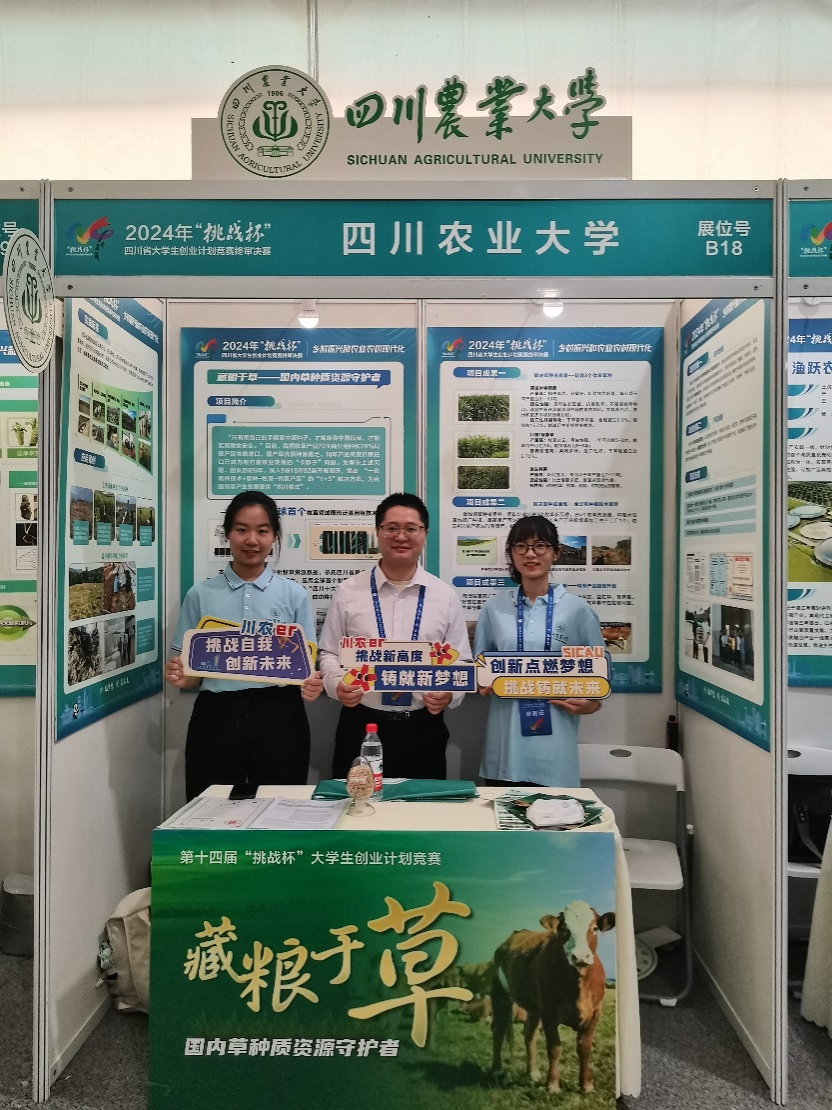由黄琳凯等老师指导、梅刚雨等同学参与的项目《藏粮于草——国内草种质资源守护者》斩获金奖。该项目以我国牧草产业多数商业用种和饲草产品依赖进口、国产草优质种源匮乏、饲草产品高度依赖进口的问题为根基,组建本硕博研究团队深入多个省市开展调研,成功选育出产量高、性能优、适种范围广的牧草新品种;应用新选育品种研制出无添加、益贮存、营养高的牲畜开袋即食包——发酵型全日粮。