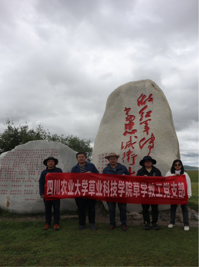面对“红军过草地纪念碑”,全体师生进行了一次思想洗礼。1960年,周恩来总理亲自将这里命名为红原县,意思就是红军长征走过的大草原。同学们在日干乔湿地中,辨识湿地植物,测定植物组成,重走长征路,感受当年红军过草地的艰辛。日干乔湿地海拔3400多米,总面积有10万多公顷,是黄河上游地区重要的水源涵养地和生态屏障。放眼望去日干乔湿地一片葱郁的绿色,可当时这里被称为“死亡之海”。据记载,由于气候原因,80多年前,整个草原沼泽里积蓄的水位,要比现在高出1.2米,加上当时的年平均气温在零摄氏度以下,经常风雪交加,过草地的艰辛和凶险可想而知。走入草原深处水草齐腰,完全看不清脚下的路,只能试探着走,脚踩之处犹如海绵,每走一步都异常艰难。红军战士们在这片草地上艰难跋涉,用顽强的意志克服种种困难,跟艰苦卓绝的自然环境做斗争,依靠顽强的革命意志,克服千难万险,最终取得了胜利。通过展牌和老师的详细介绍,结合专业知识,同学们在草原上进行了一场深刻的思政教育。
