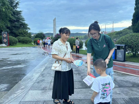 7月20日,实践团来到绵阳市北川羌族自治县禹王广场,面向羌族居民发放推普手册并宣讲推广国家通用语言文字的重要性,促进文化交流,全面推广普通话。