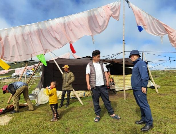 在德格县期间,孙飞达一行与德格县林业和草原局草原股、项目驻地竹庆镇政府负责人就草原鼠害防控、草地管护和合理利用等工作进行了交流,在德格县林业和草原局开展了有害生物普查及草原监测技术培训,随后走访牧户,宣传推广草原合理利用及鼠害防控技术,还在竹庆镇试验地现场为相关基层管理人员进行有害生物及植物群落调查讲解示范。