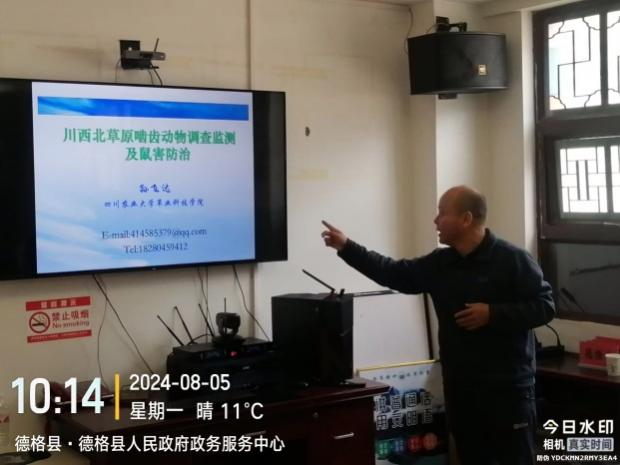 8月2日-6日,四川省科技下乡万里行草原综合技术服务团(108团)专家、91论坛孙飞达特聘教授与研究生、本科生一行12人赴德格县开展草原鼠害防控科技试点小区建设项目,并进行专业技术培训及外业现场指导。