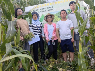 25日,在雷波县经济信息化和科技局相关领导陪同下,专家组一行到达雷波县汶水镇汶水村四川峻皓农业科技有限公司的青贮玉米-大豆带状复合种植示范基地,现场查看了带状间作青贮玉米和大豆的田间长势,并进行了技术指导。专家们在调研品比试验中的青贮玉米和大豆长势后,发现玉米品种曲辰九号和川单99、大豆品种中黄39和齐黄34适宜当地气候条件,可作为主要带状复合种植大豆品种进行推广应用。闫艳红指出,在雷波县青贮玉米大豆带状复合种植体系中,种植3行大豆和2行玉米还需进一步优化,因玉米长势很大,对大豆遮光严重,明年可以在前两年筛选出品种的基础上,进一步优化田间配置,将大豆调整为4行或应用生长调节剂进行化控防治倒伏,更能提高大豆的生物产量。同时,专家们还强调要进一步加强青贮玉米大豆田间管理,切实提升农户种植意愿,确保技术顺利落地推行。四川峻皓农业科技有限公司苏波总经理对当地青贮玉米-大豆带状复合种植的长势特别满意,他谈到雷波县常年干旱,且示范基地均为新开垦坡地,在去年种植的基础上通过专家指导、技术改进后今年长得更好了。