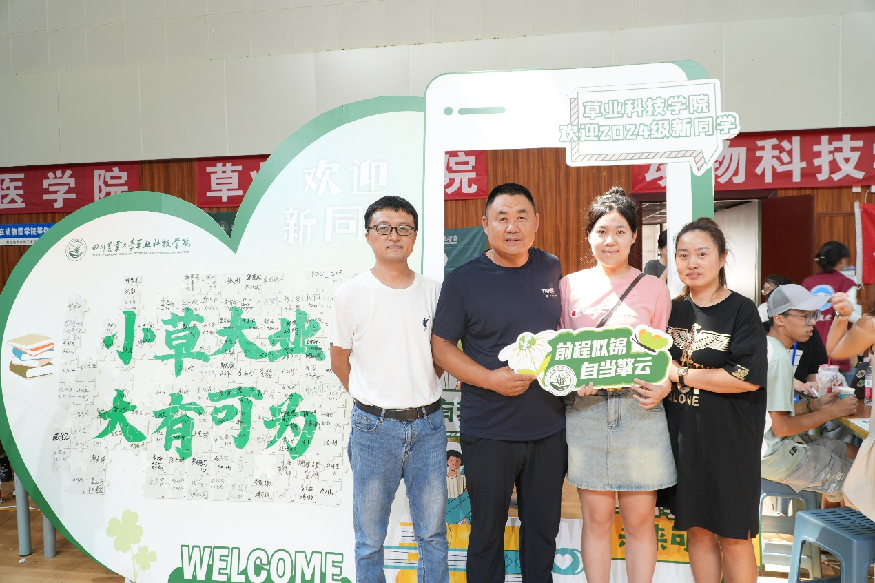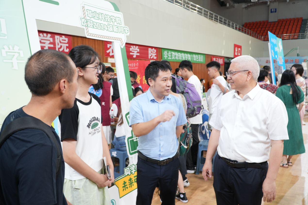 4日上午,校长吴德带队来到迎新报到点看望2024级新生及家长,并对工作人员和志愿者表示慰问。草学2401邹玉正在父母的陪同下办理报到手续,见到吴校长的她激动不已。“小学科大智慧,学好草前途无量。”吴校长鼓励邹同学学好专业知识,也对草学学科的发展前景表示充分肯定,并亲切地和同学们合影留念。“很幸运,刚一来校就得到吴校长的鼓励,接下来四年里我一定好好学习,不负所托。”邹同学如是说道。