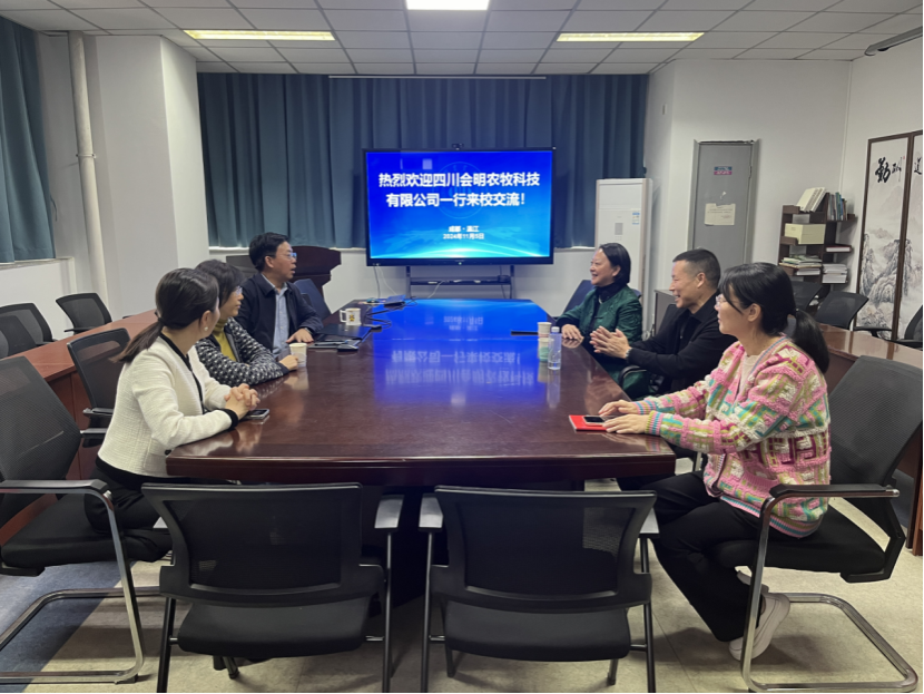 11月5日下午,四川会明农牧科技有限公司周军一行来院开展合作交流。91论坛党委书记薛波、张新全教授、彭燕教授、党委办公室主任贾婷参会。