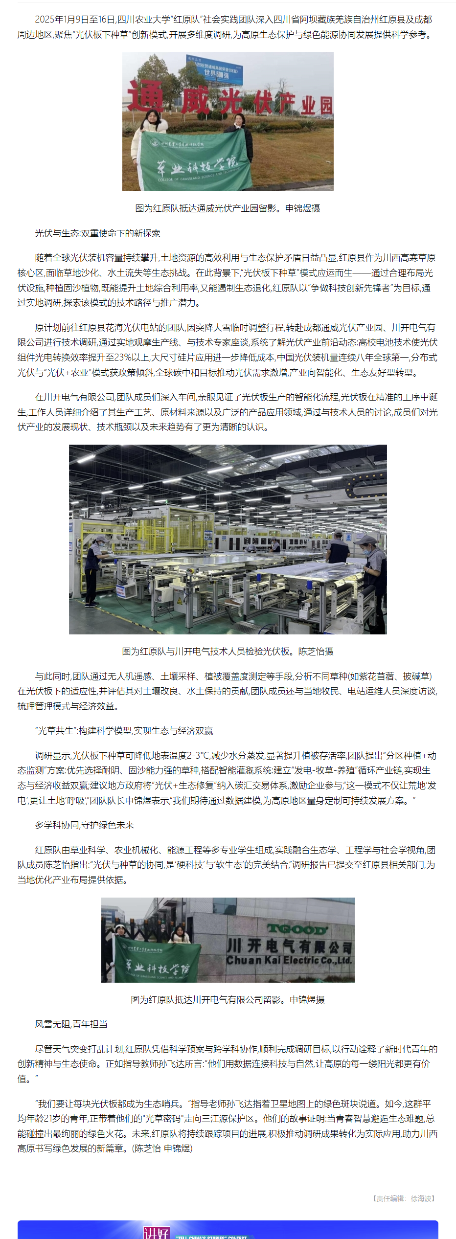(中国网)光伏板下长出"绿毯":川农学子破解高原生态修复密码