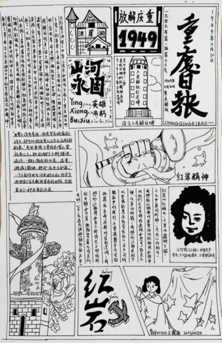 本次活动共收到47份红色手抄报,参赛的同学们都紧紧围绕着领取到的书本发挥自己独有的创意和巧思,将自身的心得感悟通过画笔和文字表达出来,这些作品不仅展现出精湛的绘画技巧,更通过独特的版面设计,使得革命先辈的奋斗史诗跃然纸上,红色基因在当代青年的笔尖焕发新生。
