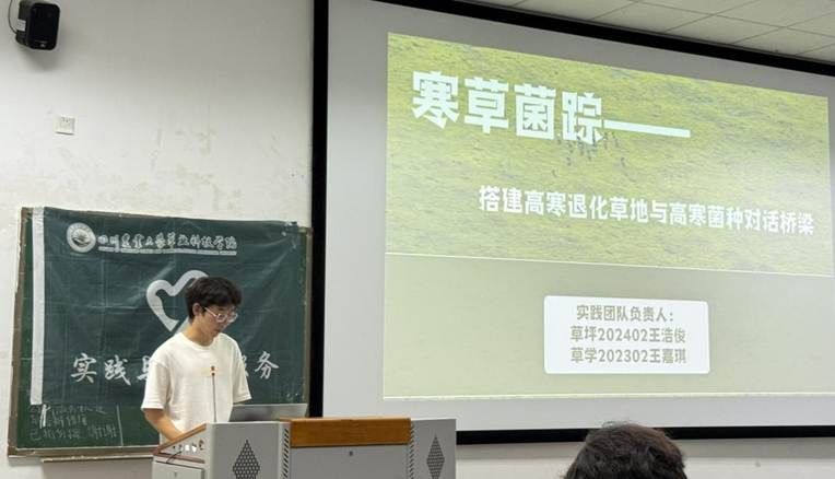 实践经验分享环节,刘起麟学长结合自身参与竞赛的经验,向在场同学分享了如何有效将社会实践成果转化为竞赛作品,也着重强调了参与社会实践对个人发展的重要性。“寒草菌踪”团队立足草业学科优势,探索搭建高寒草种与菌种的桥梁,展示了专业优势在实践中的应用;“青茵行远·草韵生光”团队通过多元化形式开展社会实践活动,为大家提供了颇多实践思路;“索玛花开”则注重传承红色经典,深入乡村进行支教为社会注入年轻力量。这些团队在分享中也进行了暑期实践的招新,鼓励在场同学积极参与其中。