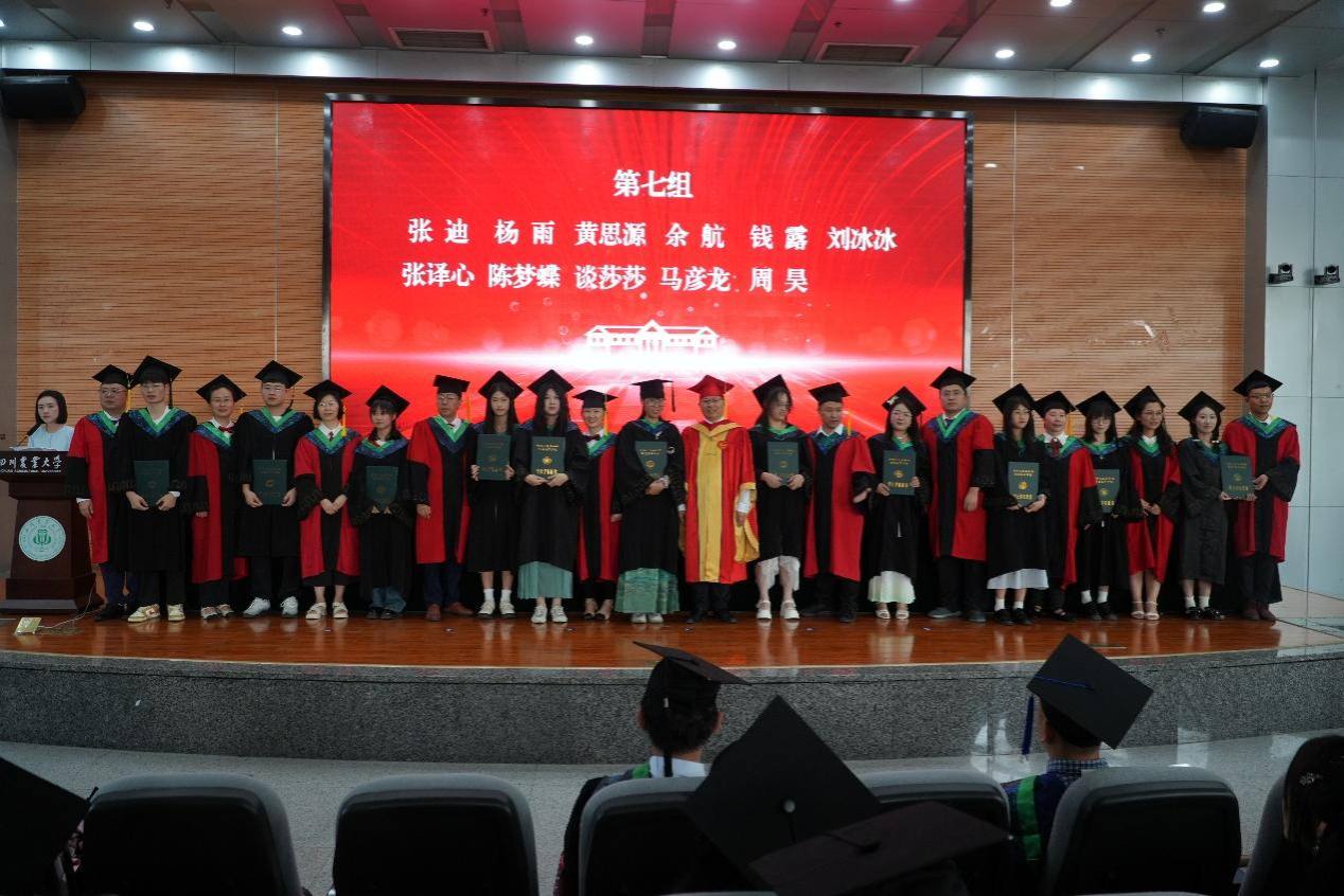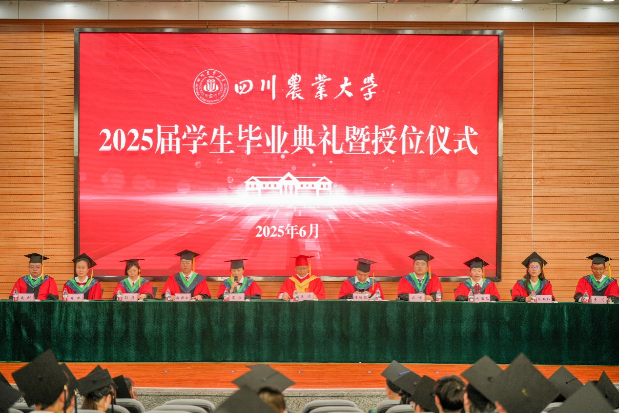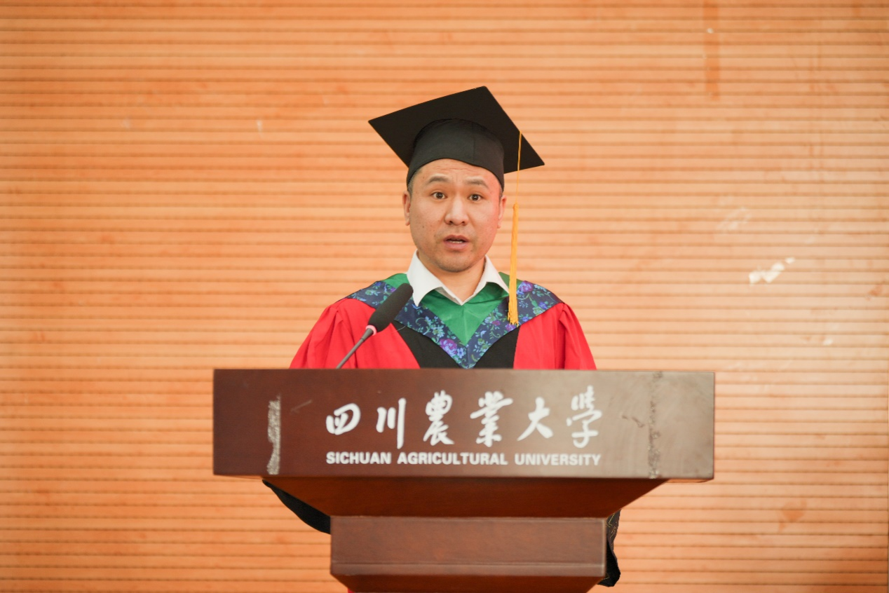 草学202102班熊春森代表本科毕业生发言。他回忆起四年前初探校园时觉得川农“真小”,而如今“好大”的川农承载了同学们无数青春故事的回响。接下来,他将心怀“追求真理”的赤诚,肩扛“造福社会”的担当,秉持“自强不息”的韧劲,前往中国农业大学继续乘风破浪。