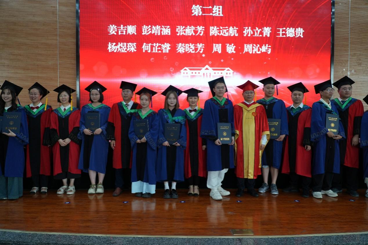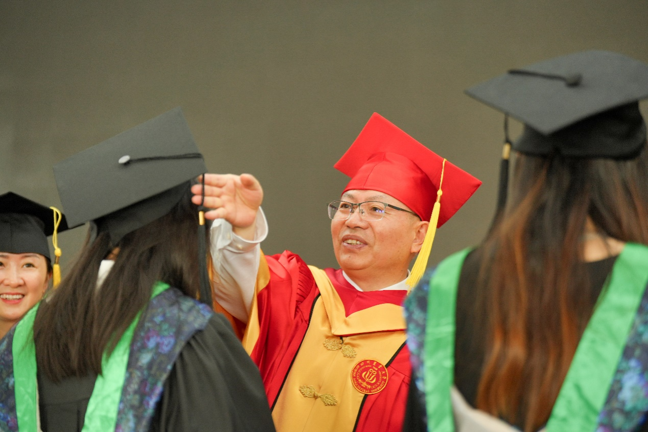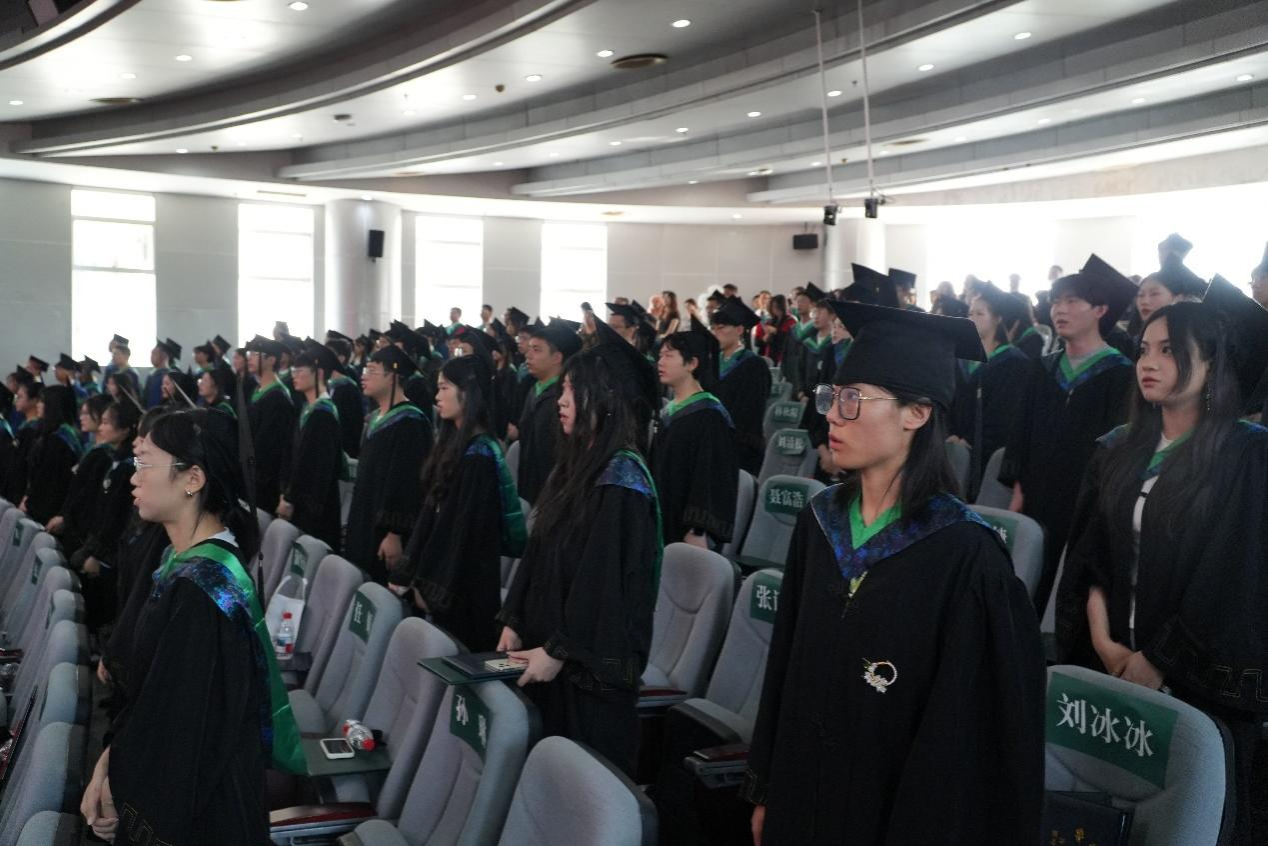 院长黄琳凯教授宣读校学位评定委员会关于授予硕士学位、学士学位的决定。主席台就坐的领导和老师为151名获得学位的毕业生拨穗授位并颁发证书。